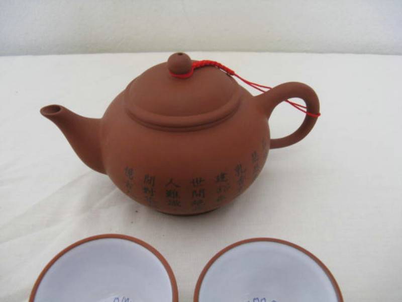 CHINEESE TEA SET. H OF CUPS = 3cm x D ON TOP 5cm. P&P=R37. (CR10)