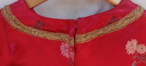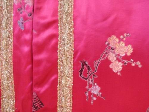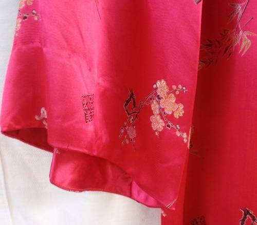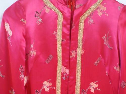 CHINESE BLOUSE - LOVELY THICK SOFT, SHADE OF PINK SATIN WITH DELICATE CHINESE PATTERNS. SIZE 32.