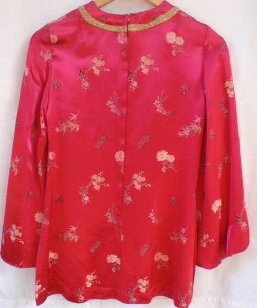 BEAUTIFULLY TAILORED CHINESE BLOUSE - MANDARIN SLEEVES - SLITS ON SIDES - ZIP ON BACK.
