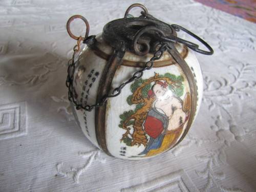 This item is missing the pipe that would fit in the centre. It is 8.5cm in height and 8cm in width. There is a bit of surface rust. Postage & packaging R60