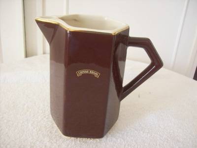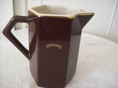 A nice porcelain jug, it is a dark maroon colour with gold bands & is marked Chivas Regal on the sides & HCW prompots made in Gt Britain, it is 175mm gigh & in good condition.