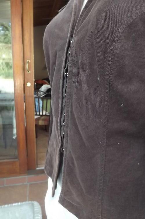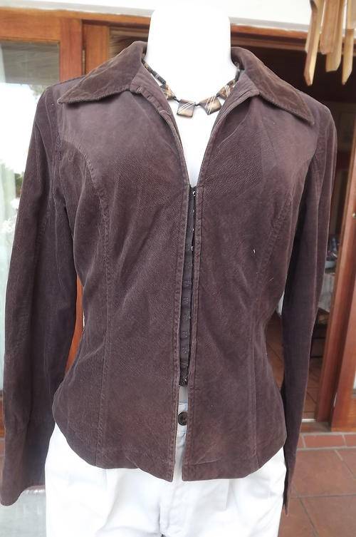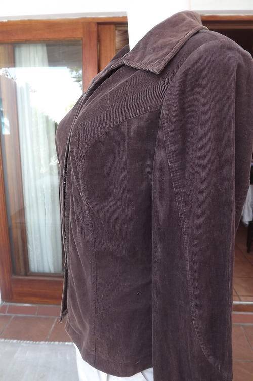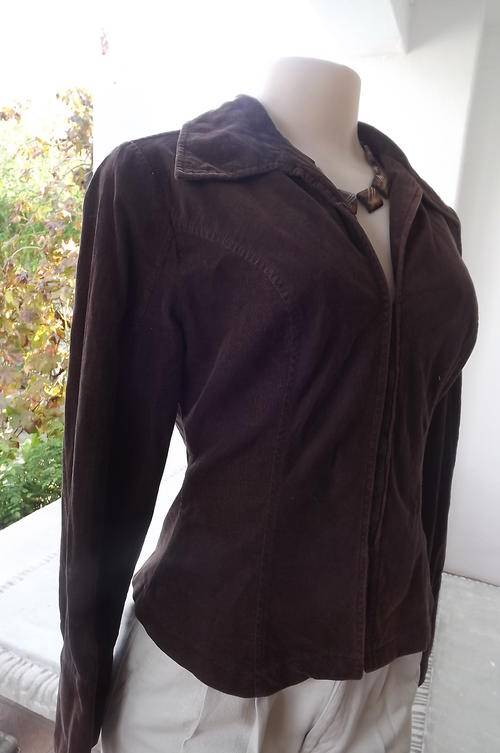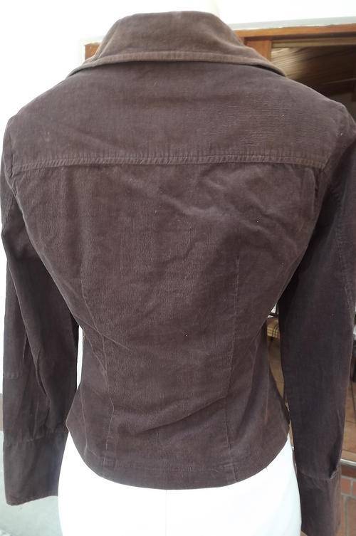 Chocolate Brown Cropped Corduroy Jacket in size 10/34 - close & open with hooks & eyes - good cond