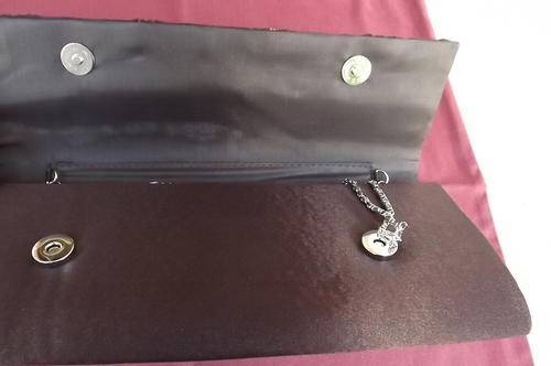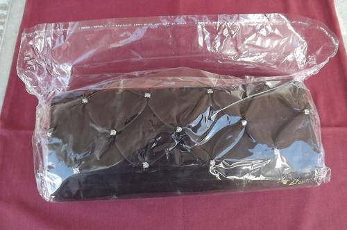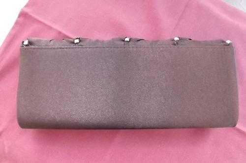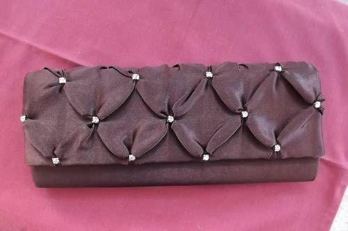 Chocolate Brown Satin Evening Clutch Bag decorated with simulated diamonds-long chain sling-12x28cm