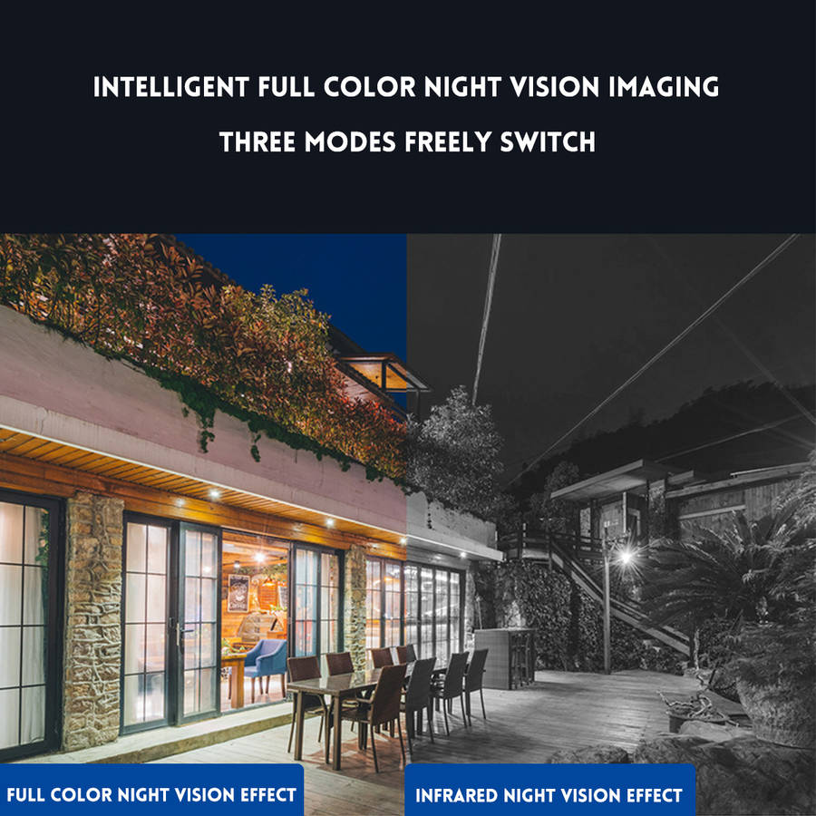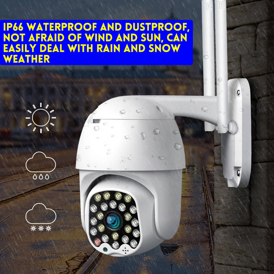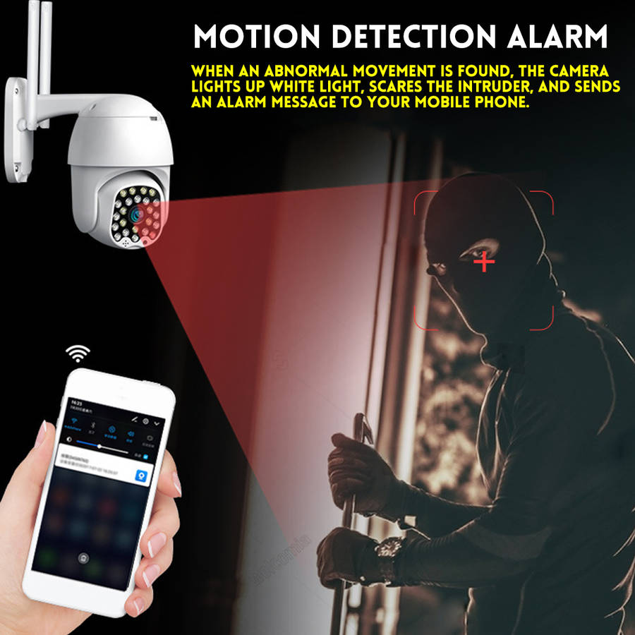 Features : -Outdoor 1080P IP Camera. -Red and blue lights warning. -IP66 Waterproof, good sealing. -Two way voice communication. -5.0MP high definition video recording. -23 high-power lights: 9 white lights, 13 infrared lights, 1 red and blue warning light. -Infrared night vision, full color night vision, smart night vision, three monitoring modes. -Intelligent motion detections, combined with motion detections technology to trigger an alarm. -High-efficiency infrared array, low power consumption, illumination distance up to 100m. -High resolution, easy to switch at any time according to different environments and different needs. -Remotely monitor your home situation from your mobile phone anytime, anywhere with mobile apps. -With motion detections alarm function that triggers an alarm when you trigger an abnormality at home to send a message to your mobile phone. -The camera has a hotspot WIFI, and no network connection hotspots are normally monitored. Specification : Model: D39331 Color: white LED: 23 Zoom: 8 x Zoom Effective Pixels: 5 million Resolution: 1920 x 1080P Pan/Tilt Rotation: Horizontal 320ᆪ, Vertical 90ᆪ Audio Input: Built-in Microphone Audio Output: Built-in Speaker Alarm Trigger: M otion Detection Image Sensor: 1/3 inch CMOS Sensor Video Compression: H.264 / MPEG4 Package includeds : 1 x Camera 1 x Manual (No Memory Card Included) Details pictures :