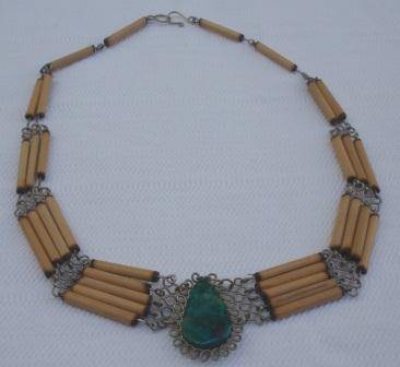 Lovely choker necklace with turquoise stone (not real turquoise, but looks great) In good condition. Length 39cm. Size of centre stone L 2.5cm x W 2cm. A fun piece of jewellery bought in Miami. Postage R30.00 in S.Africa