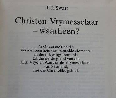 Christen-Vrymesselaar waarheen? deur J.J. Swart Christen-Vrymesselaar waarheen? deur J.J. Swart