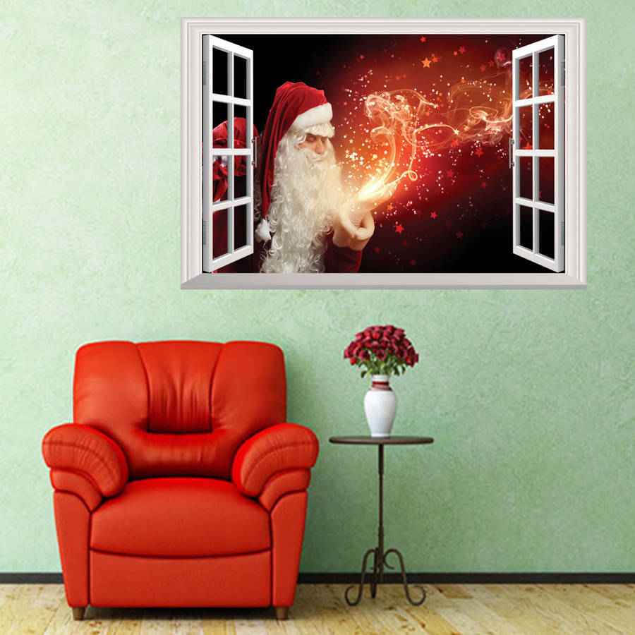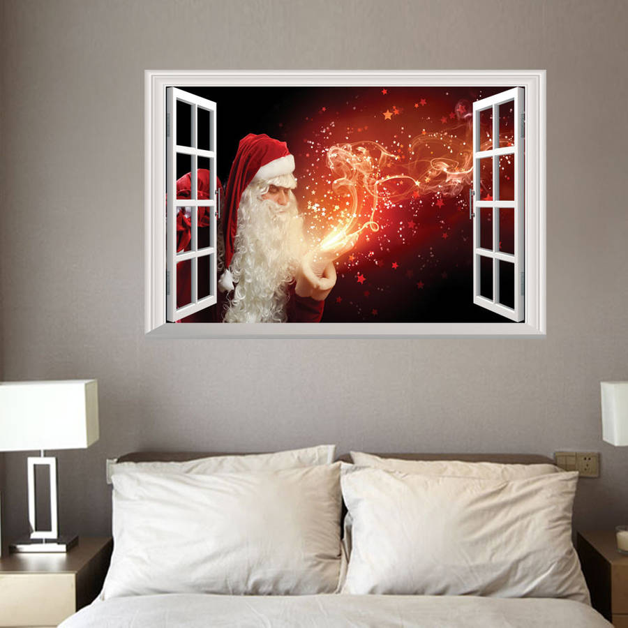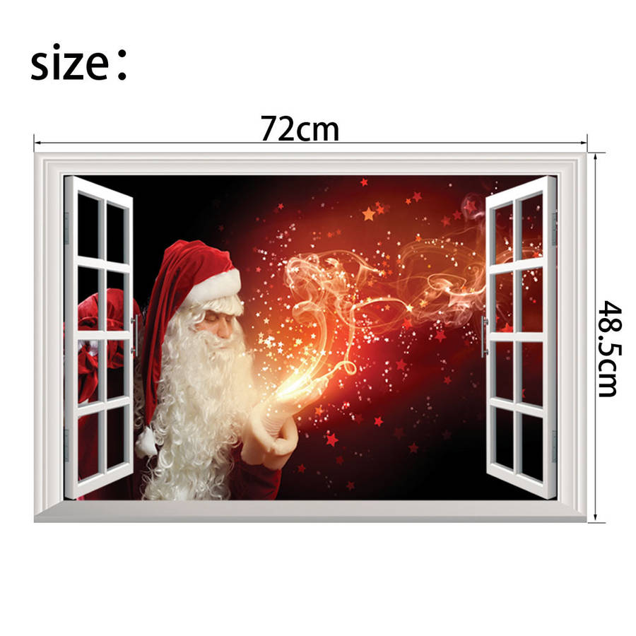 Christmas 2017 Christmas Tree Santa Claus Gift Fireworks Night View 3D Wall Stickers