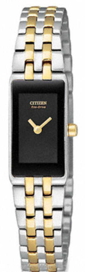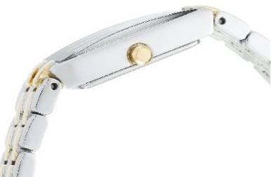 Case 14mm in diameter x 4mm thick Slim Silver Tone case with Gold Tone Crown Black Dial