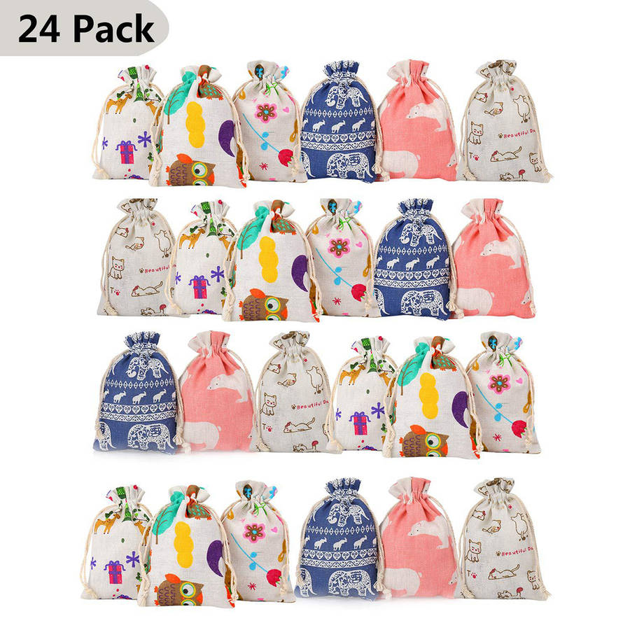 Durable: Durable and easy to store, and can be reused at every Christmas, 24 jute bags can be put into different small gifts, every day can have a little Christmas surprise.