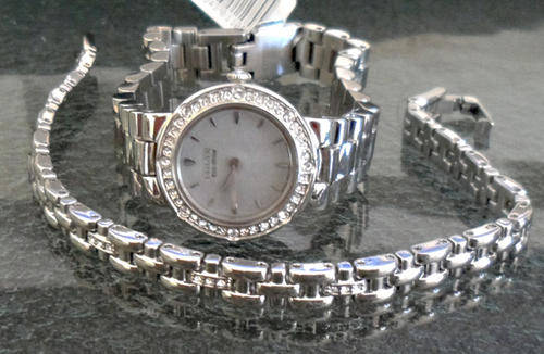 Swarovski Crystals on Bezel wth Silver-Tone surround