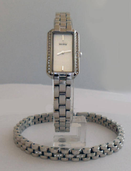 Case 25 x 15mm Silver Tone Stainless Steel Swarovski Crystal Bezel Silver Tone Dial Mineral Crystal Water resistant 30m