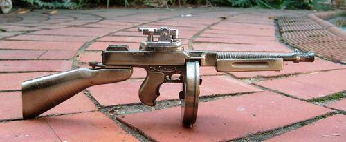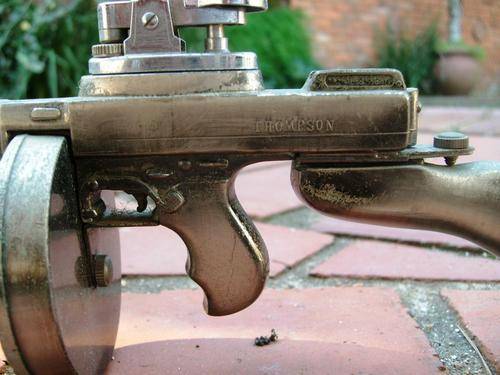 Chrome Cigarette Lighter Shaped as a Thompson Sub-machine Gun