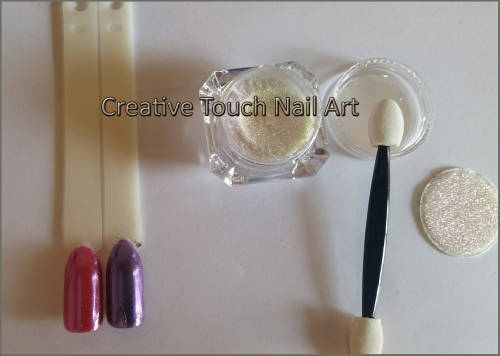 3.Use a sponge tipped eyeshadow applicator, or a silicone brush to buff a thin layer of pigment onto nail surface.