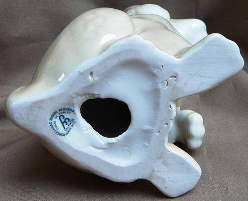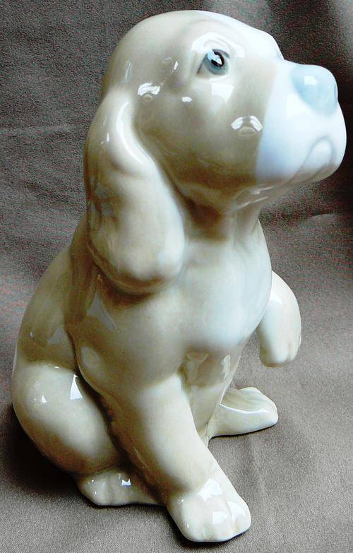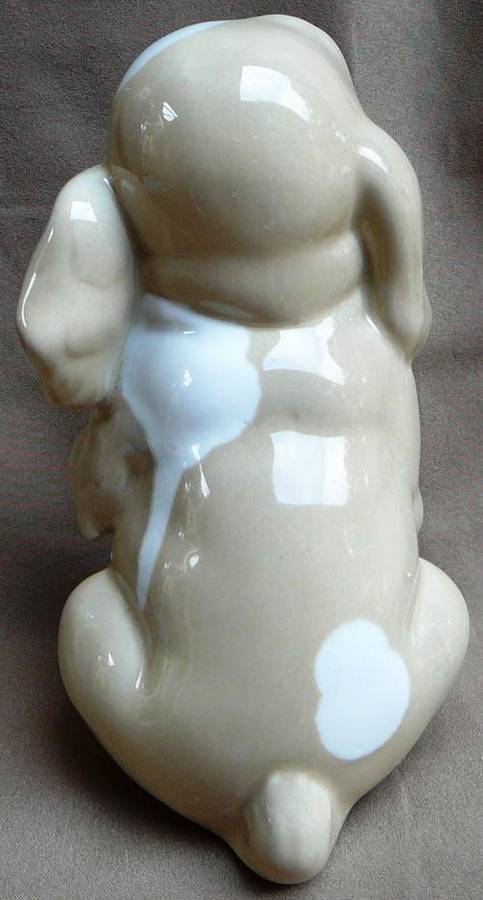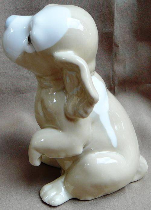 This Really Cute Puppy was Made In Valencia Spain by Miquel Requena. There is what appears to be a manufacturers flaw around the hole in the base, possibly from the firing in the Kiln. It is 130 mm high 90 mm wide and weighs 252 grams.