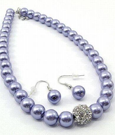 CHUNKY BLUE GLASS PEARLS AND CRYSTAL BALL - NECKLACE SET