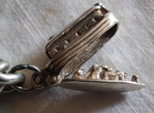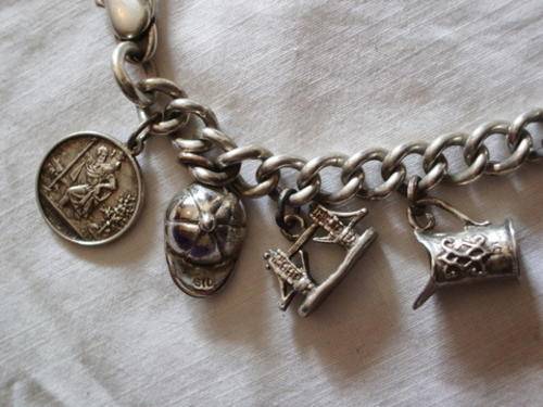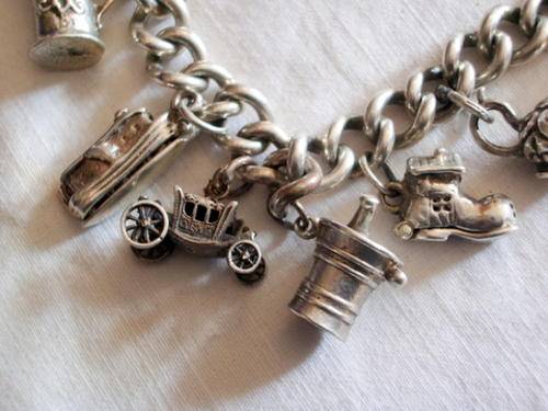 This is what a charm bracelet should look like, full of beautiful and interesting vintage charms soldered onto an old watch chain. Beautiful old quality English sterling silver.