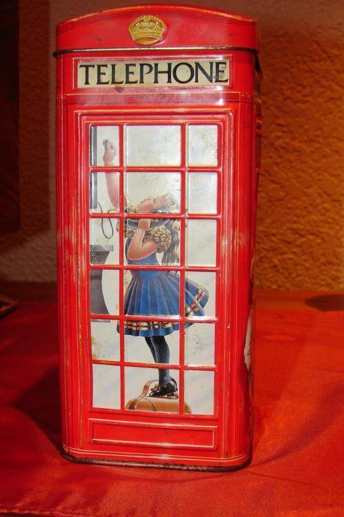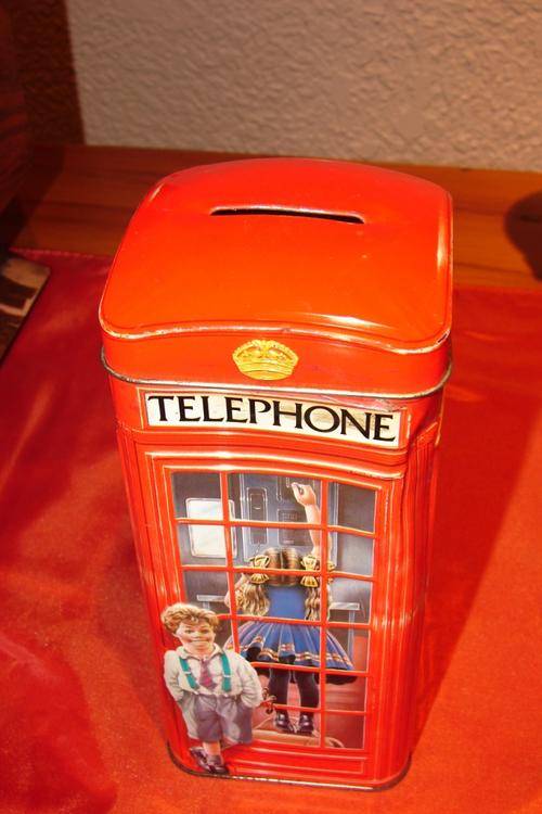 Churchills "Heritage of England telephone Kiosk (Money Box) Tin - height 18cm