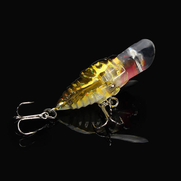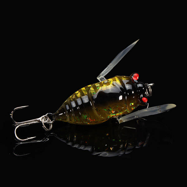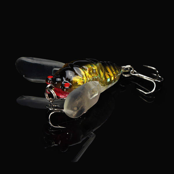 Features: Cicada hard bait with hooks The killer of basses, black fishes,grass carps,carps and so on According to the take-up speed and twitch fishing rod, the bait will show a lively swimming action in water. A lot of fishes are in the habit of eating insects,so the insect baits are more advantaged and higher rates of catching fishes.