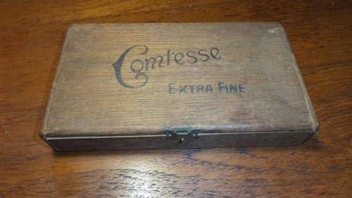 Comtesse Extra Fine Wooden Cigar Box with two sets cigarette cards.