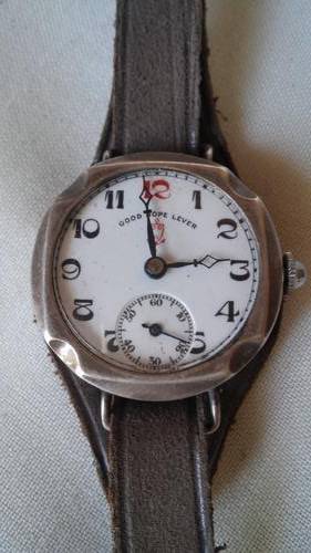 CIRCA 1920'S SILVER "GOOD POPE LEVER" WATCH WITH LEATHER STRAP