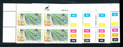 Ciskei - 1988 - Citrus Farming - Set of 4 control blocks of 4 mint unhinged . SACC 141-144 . Ciskei - 1988 - Citrus Farming - Set of 4 control blocks of 4 mint unhinged . SACC 141-144 .