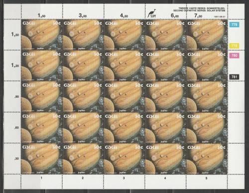 CISKEI 1991 2ND DEFINITIVE SOLAR SYSTEM 30c 778-781 MNH FULL SHEET OF 25