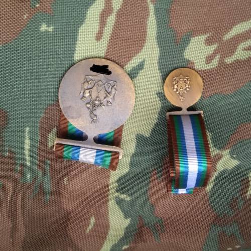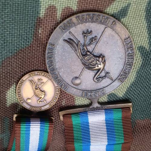 Here on auction we have a numbered (number is very low less than "50") pair of full size and miniature Ciskei (an ex- South African pre-1994 independent homeland which no longer exists and was re-intergrated back into SA after the 1994 Democratic elections in SA) INDEPENDENCE medals with the correct ribbon (decent lengths).