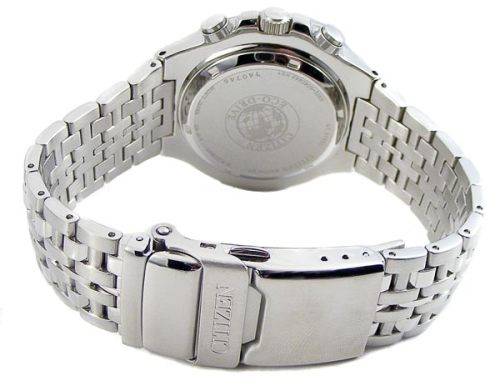Powered by Citizen Eco-Drive technology. Solar cell beneath the dial is used to convert light energy to electrical energy and is stored in a secondary rechargeable cell. No need for battery replacements ever again!