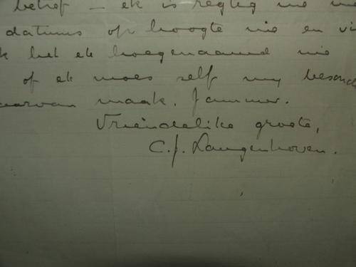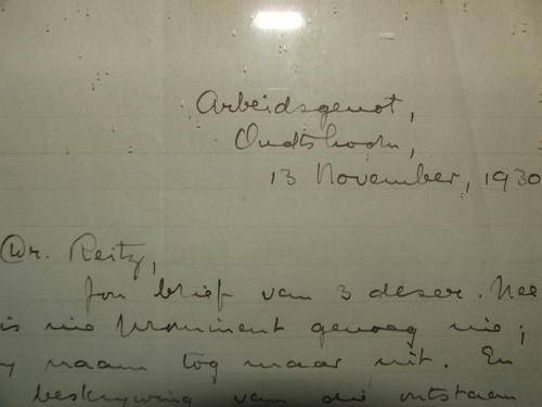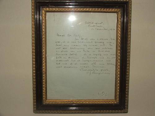 ORIGINAL LETTER WRITTEN BY CJ LANGENHOVEN IN AFRIKAANS. DATED 13 NOVEMBER 1930. ADRESS: ARBEIDSGENOT, OUDTSHOORN. FRAMED.