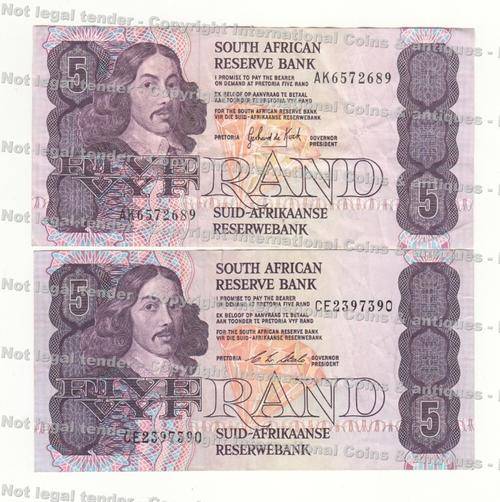 CL Stals & GPC de Kock pair of five rand notes as per scan