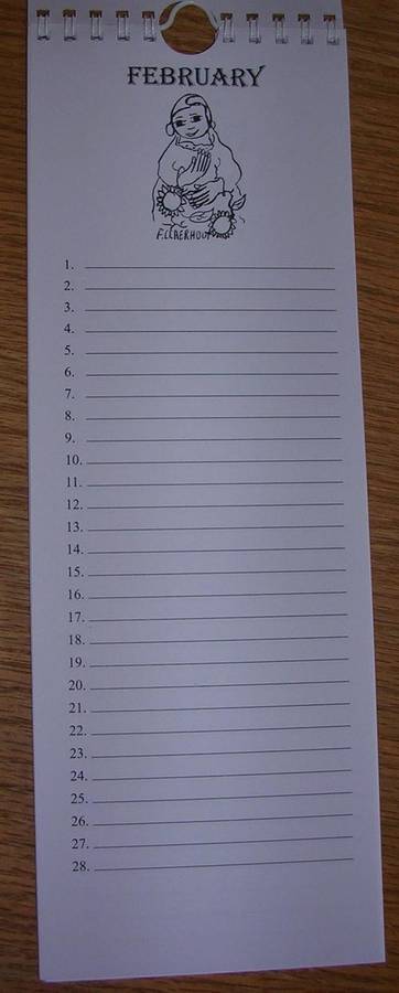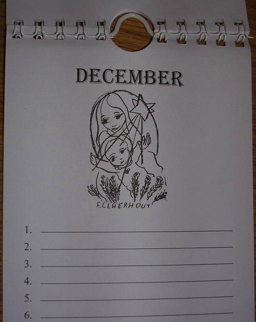 TWELVE PAGE BIRTHDAY CALENDAR, EACH MONTH OWN PICTURE.PRINTED 2005 With father's and Claerhout foundation's permission. Original drawings at Claerhout foundation. ORDER 50 OR MORE AND SHIPPING IS FREE
