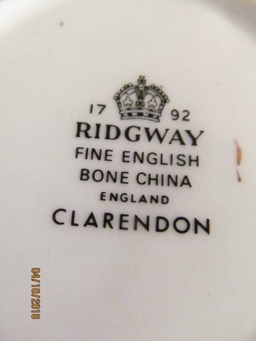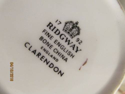 STAMPS/MARKS ETC : EACH ITEM IS STAMPED UNDERNEATH - "1792,RIDGWAY, FINE ENGLISH BONE CHINA, ENGLAND, CLARENDON"