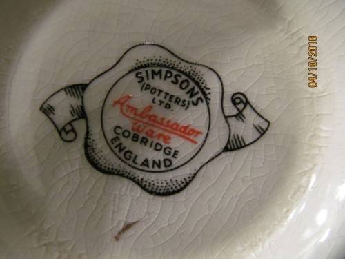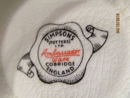 STAMPS/MARKS ETC : EACH ITEM IS STAMPED UNDERNEATH - "SIMPSONS (POTTERS) Ltd, AMBASSADOR WARE, COBRIDGE, ENGLAND"