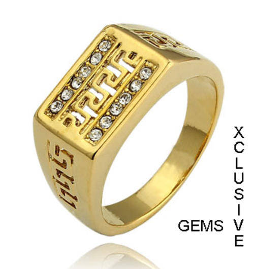 CLASSIC 18K YELLOW GOLD PLATED SIMULATED DIAMOND MEN'S RING
