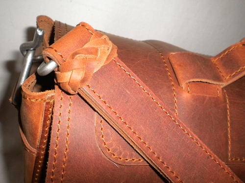 Closing straps with stainless steel harness buckles, around the bag for extra support.