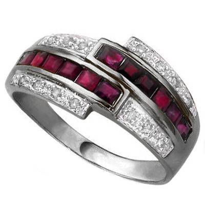 CLASSIC CHANNEL SET 12 PCS RUBY & 2 PCS WHITE DIAMONDS 0.925 STERLING SILVER W/ PLATINUM RING