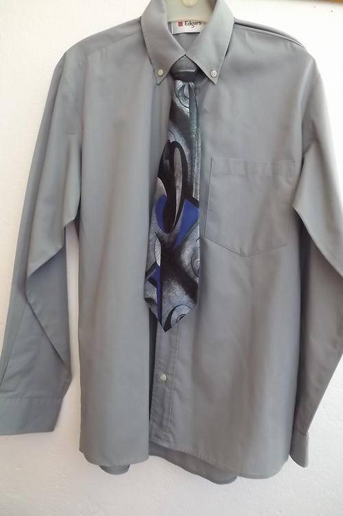 Classic Grey Edgars Shirt with Long Sleeves in size Small+Matching Tie by Pierre Cardin Paris-as new