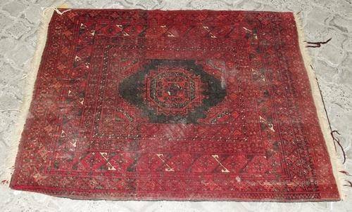 Heavy hand woven rug. Good condition with a bit of wear. Dimensions: 108cm x 97cm. Delivery can be arranged.