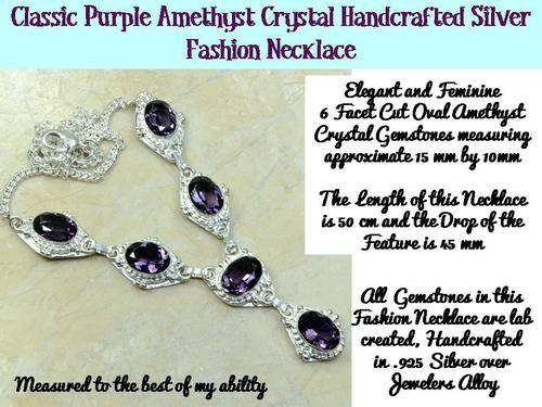 Classic Purple Amethyst Crystal Handcrafted Silver Fashion Necklace