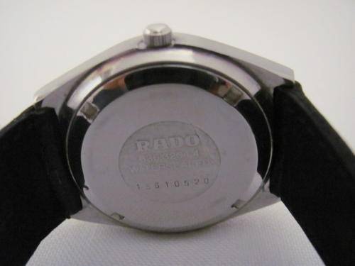 Case: High Grade Rado stainless steel case. Measures 33 mm. with crown, 35 mm. lug to lug. Case has just been buffed and polished and is in very good condition.