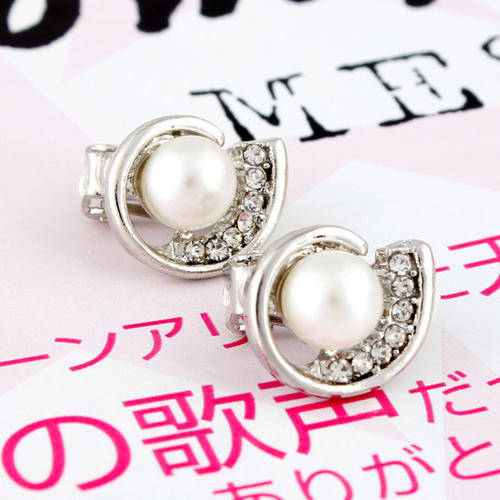 CLASSIC RHINESTONE AND FAUX PEARL CLIP ON EAR STUDS