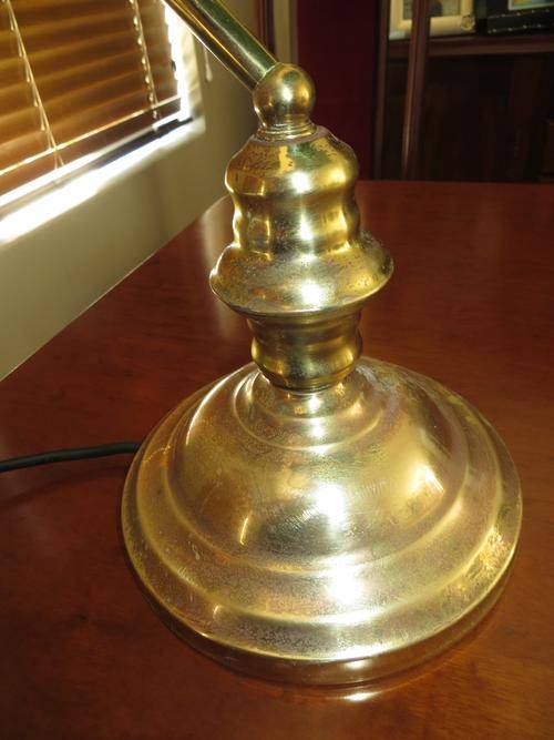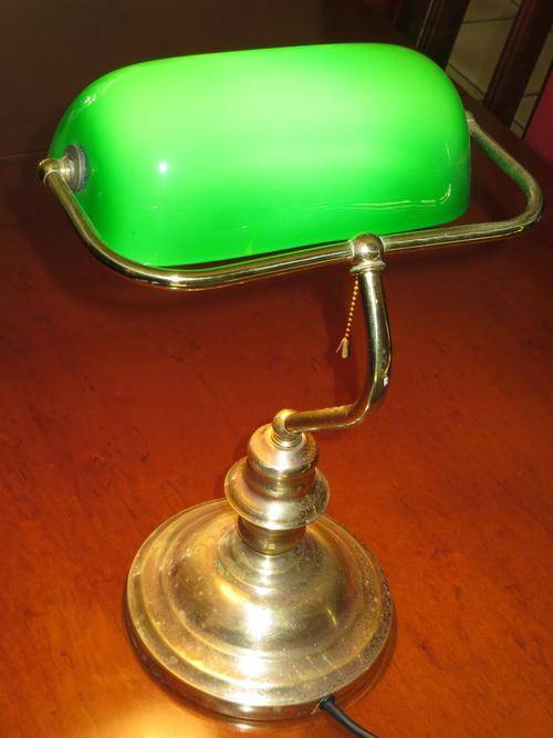 Stunning classic Bankers desk lamp, with green glass shade and brass base and body. Would look fabulous in any vintage decor. In good working condition