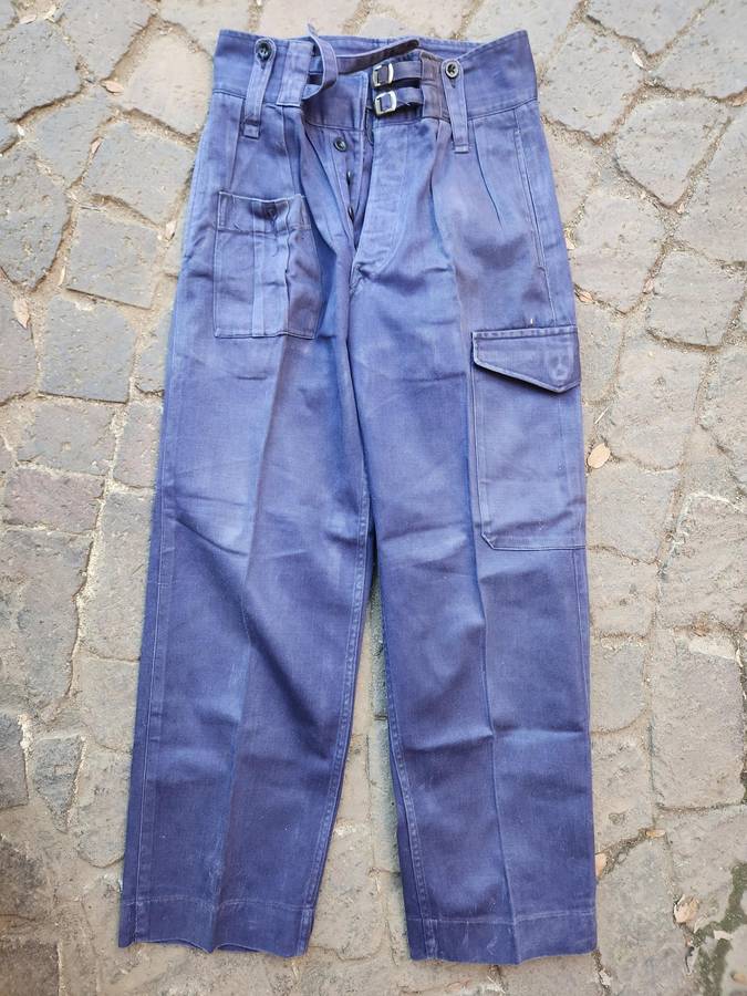 Here on auction we have a pair clean (as new) rarely seen BSAP Rhodesia era urban "blues" (thick blue cotton denim material) uniform trousers - no damage (small size waist approx 34 inches).