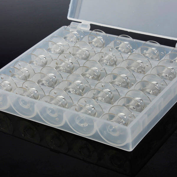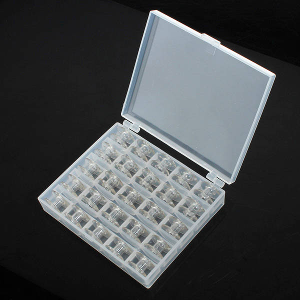 Features: Perfect for storing false nails and little jewelry. 25pcs empty sewing machine plastic bobbins in storage box. Suitable for most janomes, singers, and some late model brothers. Description: Item Type: Bobbins & Box Material: Plastic Bobbin Size: 2cmX1cm Box Size(LXWXH):11.8cm X 9.8cm X2.8 cm Color: Clear Weight: App 87g Package Include: 1 X Plastic Box with 25 Bobbins