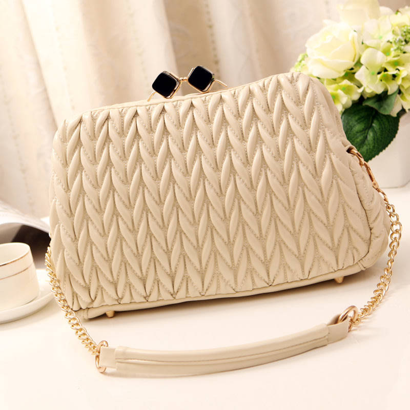 Clearance! Vintage design retro flip style ladies chain handbag. Rice white color.
