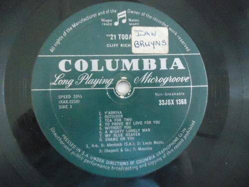 On offer, is this CLIFF RICHARD "21 TODAY" COLUMBIA LONG PLAYING LP SUPPLIED IN A PLASTIC COVER IN V/GOOD CONDITION