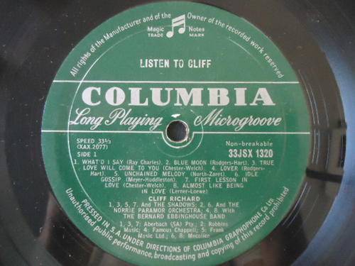 On offer is this CLIFF RICHARD "LISTEN TO CLIFF" COLUMBIA LONG PLAYING LP SUPPLIED WITH A PLASTIC COVER IN V/GOOD CONDITION
