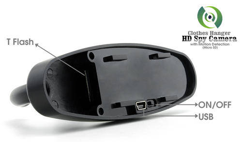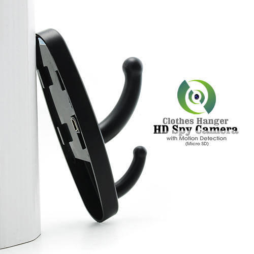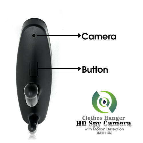 HD Spy Camera Clothes Hanger with 2Gb TF CardRecords audio & videoMotion detection recordingVirtually undetectable pinhole lensFully functioning wall mount clothes hangerSaves beautiful 1280 x 960 30FPS video to micro SD card