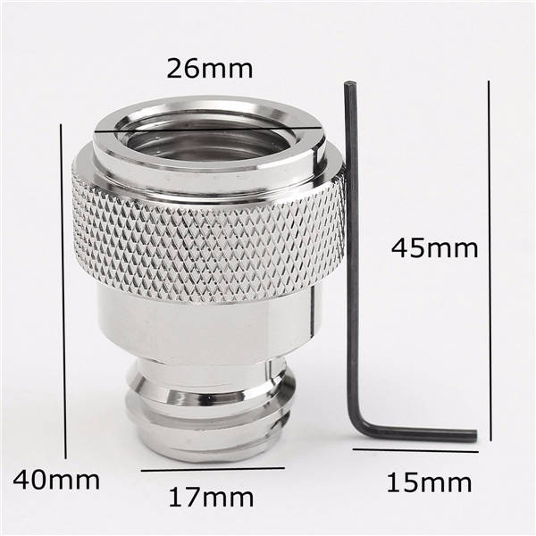 Description: CO2 Sodastream Adapter Replace Tank Paintball Canister with L Wrench Specifications: Material: Metal Color: Silver Size: 17x40x26mm Features: 1. Easy to install and safe to use 2. CO2 adapter for easy gas refilling and access at any local sporting store 3. Compatible with any standard paintball tank for your Sodastream machine 4. Save your money from spending on the expensive Sodastream tank 5. Including the L wrench key for adjusting the center pin if needed Package Includes: 1 X Replace Adapter 1 X Wrench More Details: