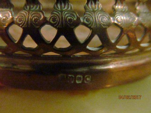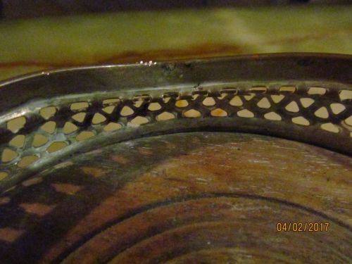 With a Lovely Reticulated Pierced metal pattern along the sides and a craved wood base, this vintage Bottle coaster has been manufactured with a diameter wide enough to accommodate almost any bottle size. The item has also been fitted with a layer of Green Felt underneath to protect the surface upon which it stands.